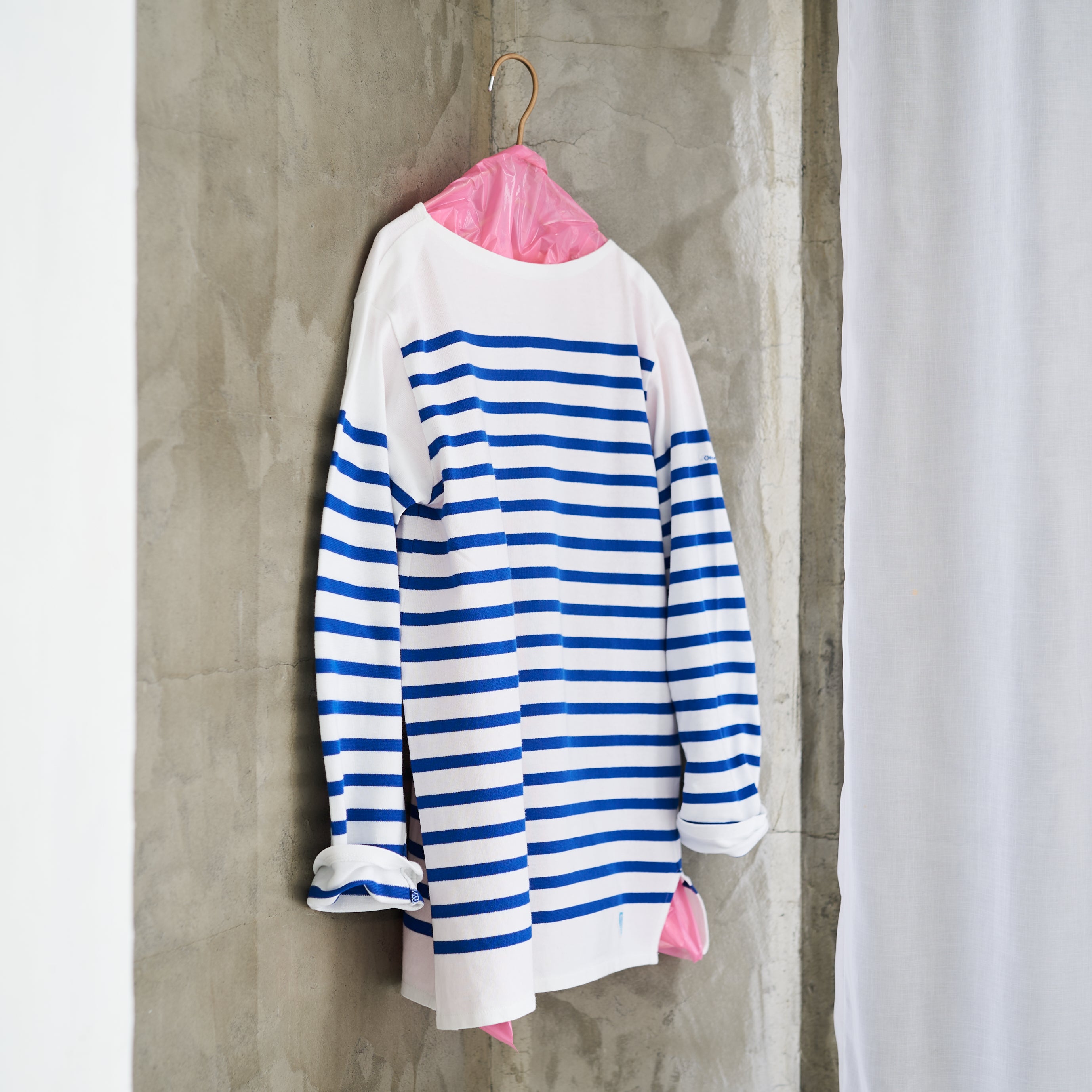 Men's Cotton Lourd Wide Basque Shirt Narrow Stripe