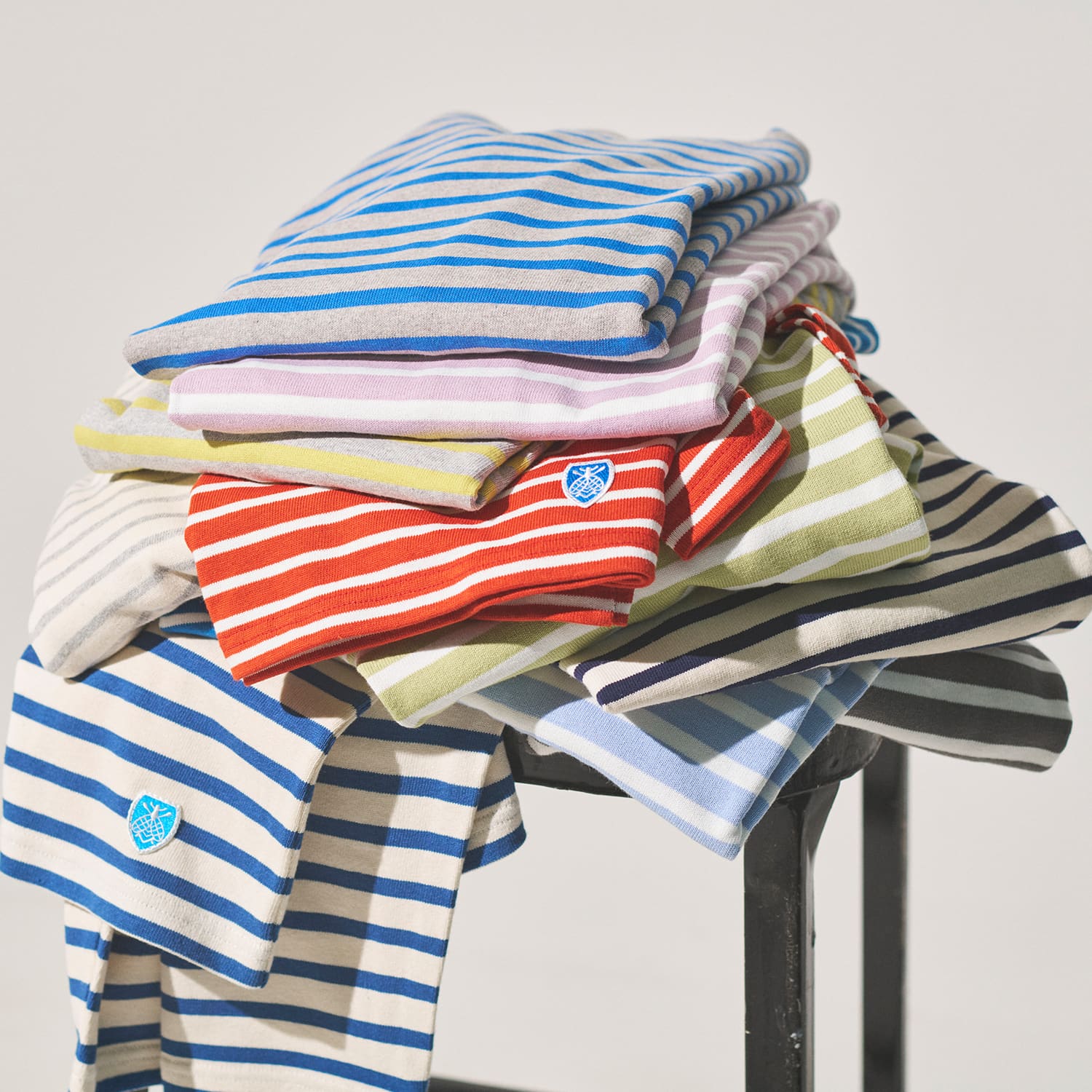 Women's Cotton Lourd Bottle Neck Basque Shirt Narrow Border